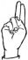 На ћирилици написано АНДЈЕЛИНА ЧАНЧАРЕВИЋ састоји се из 19 слова [?]. Исписано ћириличном једноручном азбуком за глувонеме: